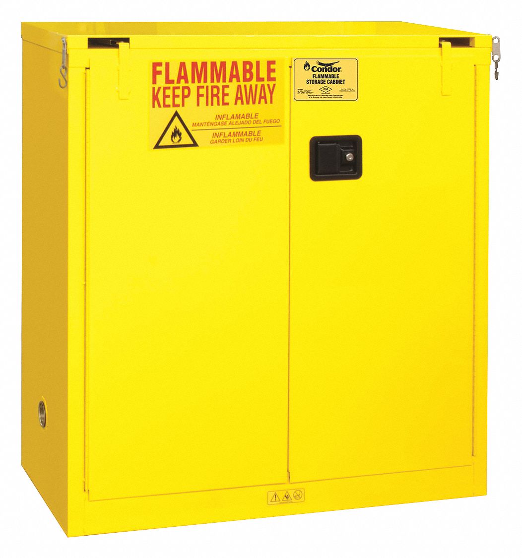 Store your flammable liquids safely . The lyon 74r5440n flammable liquids safety storage cabinet conforms to nfpa fire code 30 and osha standards. Lyon follows the industry standard for color coding a yellow safety cabinet for flammable materials. Specifically designed to provide you with the most versatile storage interiors, lyon safety cabinets with shelves that adjust on 1/2 in centers enable you . All welded 18 gauge, double wall construction .